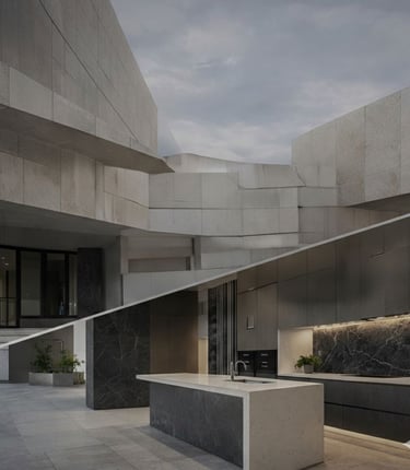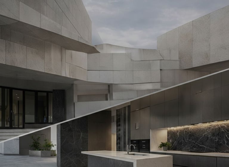 Trabajamos con materiales de última generación (Neolith, Dekton) y piedra natural. Superficies ultra-compactas para fachadas monumentales y encimeras indestructibles.