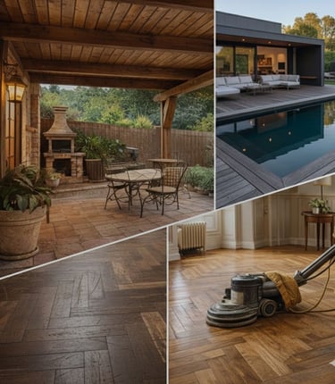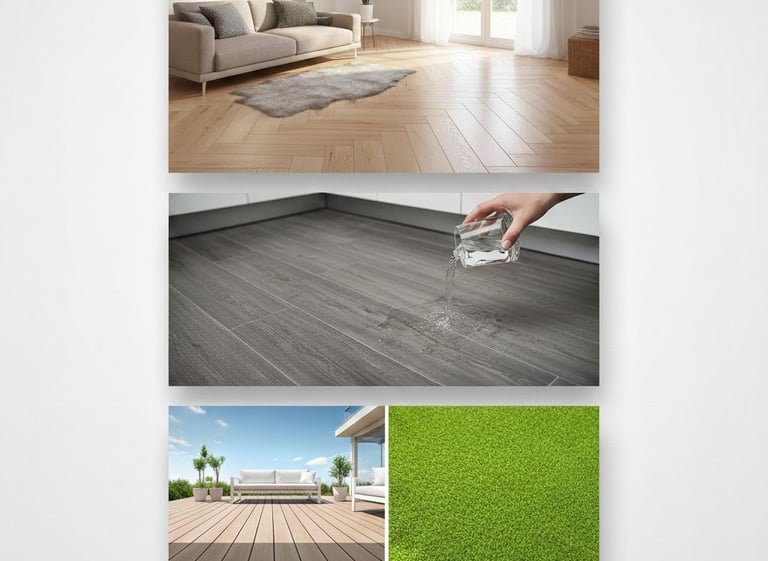 La calidez de la madera con la resistencia de la tecnología. Instalamos laminados, vinilos resistentes al agua y madera tecnológica (WPC) para terrazas y jardines sin mantenimiento.