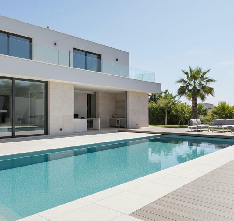 Creamos espacios exteriores diseñados para durar. Somos expertos en la instalación de coronaciones de piscina con piezas cerámicas antideslizantes, tarimas tecnológicas (WPC) que resisten la intemperie sin mantenimiento y fachadas de piedra sinterizada que protegen y embellecen tu edificio frente a cualquier clima.