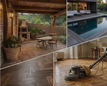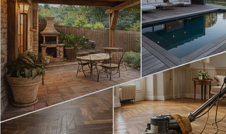 Exteriores de Lujo: Instalamos maderas nobles tratadas para resistir la intemperie en terrazas y porches.