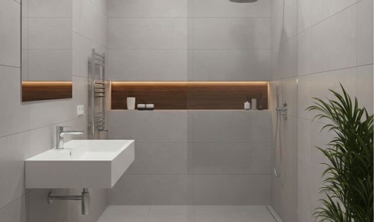 Nos especializamos en la colocación de piezas de gran formato, minimizando las juntas para crear espacios continuos, higiénicos y visualmente amplios.